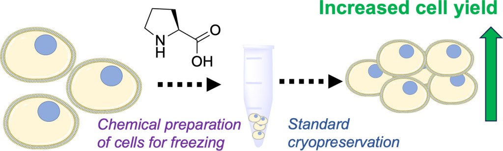*147 Bailey, T.L., Hernandez-Fernaud, J.R., Gibson, M.I., RSC Medicinal Chemistry, 2021, 12, 982 – 993, Proline pre-conditioning of cell monolayers increases post-thaw recovery and viability by distinct mechanisms to other osmolytes, . link