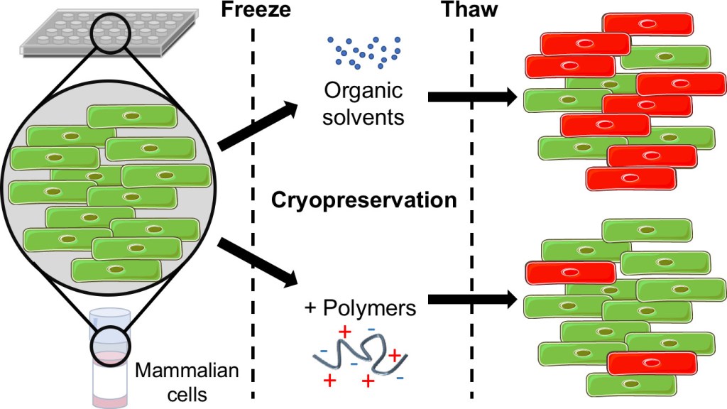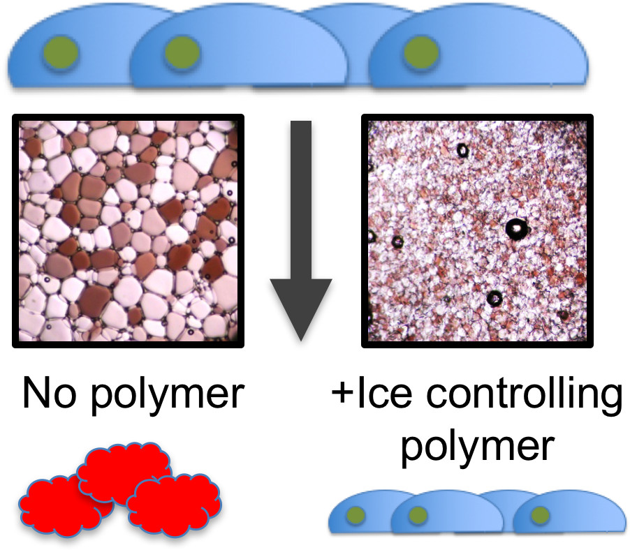 *41 Deller, R.C., Vatish, M., Mitchell, D.A., Gibson, M.I., Nat. Commun., 2014, 5, 3244, “Synthetic polymers enable non-vitreous cellular cryopreservation by reducing ice crystal growth during thawing” Link