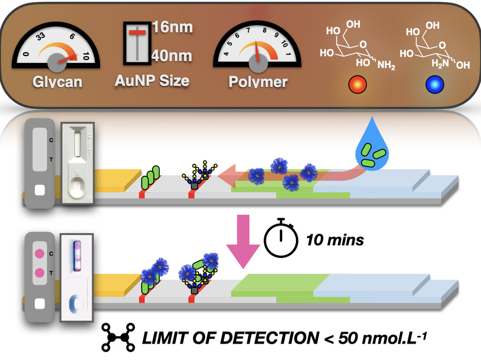 *164 Baker, A.N., Georgiou, P.G, Dedola, S., Field, R.A., Gibson, M.I., Chemical Society Reviews, 2022, 51, 7238-7259 Glycosylated Gold Nanoparticles in Point of Care Diagnostics: From Aggregation to Lateral Flow, link