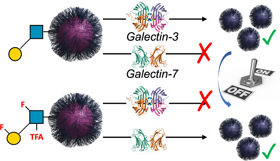 *140 Richards, S-J.,Keenan, T., Vendeveille,J-B., Wheatley, D.E., Chidwick, H., Budhadev, D., Council, C.E., Webster, C.S, Ledru, H., Baker, A.N., Walker, M., Galan, MC., Linclau, B., Fascione, MA., Gibson, M.I., Chemical Science, 2021, 12, 905 – 910, Introducing affinity and selectivity into galectin-targeting nanoparticles with fluorinated glycan ligands. link