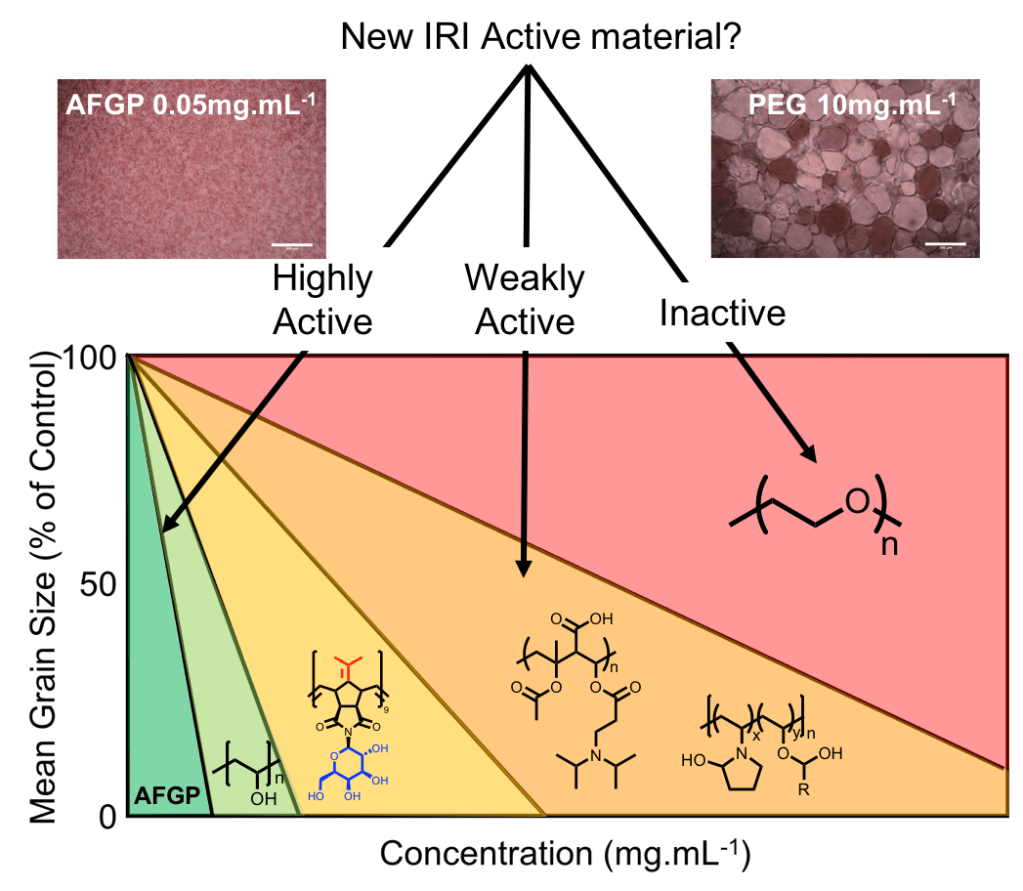 *32 Deller, R.C., Congdon, T., Sahid, M., Morgan, M., Vatish, M., Mitchell, D.A., Notman, R., Gibson, M.I., Biomater. Sci., 2013, 1, 478 – 485 “Ice recrystallisation inhibition by polyols: comparison of molecular and macromolecular inhibitors and role of hydrophobic units” Link