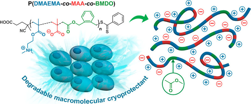 *161 Pesenti, T., Zu, C., Gonzalez-Martinez, N., Tomás, R.M.F., Gibson, M.I., Nicolas, J., ACS MacroLetters, 2022, 11, 889-894, Degradable Polyampholytes from Radical Ring-Opening Copolymerization Enhance Cellular Cryopreservation, Link