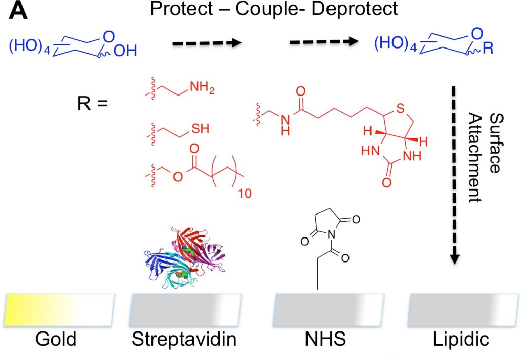 *50 Biggs, CI., Edmondson, S,,and Gibson, M.I., Biomater. Sci., 2015, 3, 175 – 181, “Thiol-ene Immobilisation of Carbohydrates onto Glass Slides as a Simple Alternative to Gold-Thiol Monolayers, Amines or Lipid Binding” Link