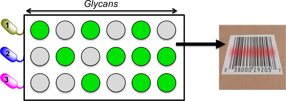 *42 Richards, S-J., Fullam, E.C, Besra, G., Gibson, M.I., J. Mater. Chem. B, 2014, 2, 1490 – 1498 , “Discrimination between Bacterial Phenotypes using Glyco-Nanoparticles and the Impact of Polymer Coating on Detection Readouts” Link
