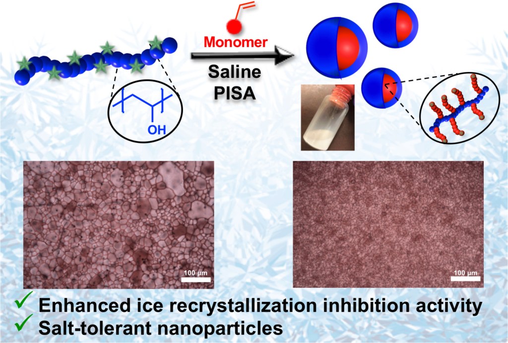 *132 Georgiou, P.G., Kontopoulou, I., Congdon, T., Gibson, M.I., Materials Horizons, 2020, 7, 1883-1887, Ice Recrystallisation Inhibiting Polymer Nano-Objects via Saline-Tolerant Polymerisation-Induced Self-Assembly. link