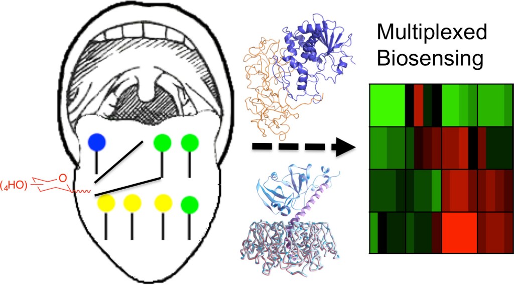 *55 Otten, L.C., Gibson, M.I., RSC Advances, 2015, 5, 53911 – 53914,. ‘Discrimination between Lectins with Similar Specificities by Ratiometric Profiling of Binding to Glycosylated Surfaces; A Chemical ‘Tongue’ Approach’. Link
