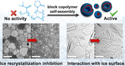 *146 Georgiou, P., Marton, H.L., ; Baker, AN., Congdon, TR., Whale, T., Gibson, M.I., Journal of the American Chemical Society, 2021. 143, 7449 – 7461, Polymer Self-Assembly Induced Enhancement of Ice Recrystallization Inhibition link