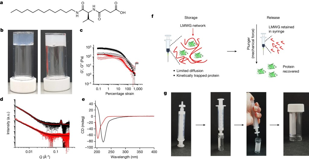 *190 Bianco, S., , Hasan M., Ahmad A., Richards S.-J.,, Dietrich D., Wallace M., Tang Q., Smith A.J., Gibson M.I., Adams, D.J.,Nature, 2024, 631, 544–548 Mechanical release of homogenous proteins from supramolecular gels link