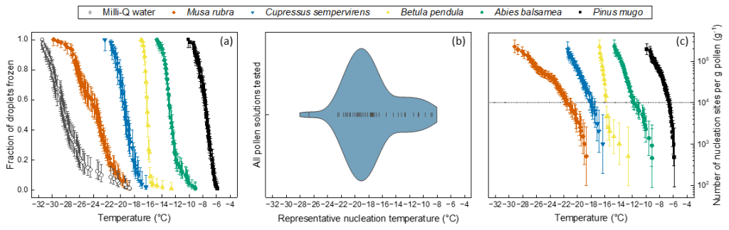 *188. Kinney, NLH., Hepburn, C.A., Gibson, MI, Ballesteros, D., Whale, TF.,Biogeosciences, 2024, 21, 3201–3214 High interspecific variability indicates pollen ice nucleators are incidental link