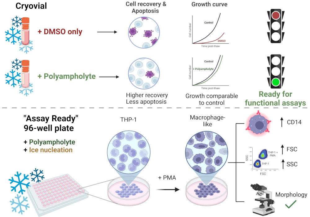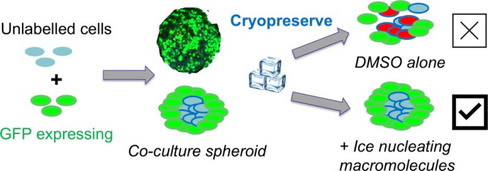 *197 Gao Y., Bissoyi A., Guo Q., Gibson MI., ACS Biomaterials Science and Engineering, 2025,11, 208-212, Induced extracellular ice nucleation protects co-cultured spheroid interior and exterior during cryopreservation, link