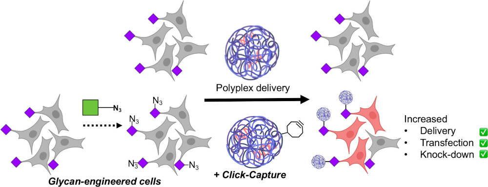 *193 Tang, Q., Tomás RMF., Gibson MI., Chemical Science, 2024,15, 15731 Covalent Recruitment of Polymers and Nanoparticles onto Glycan-Engineered Cells Enhances Gene Delivery During Short Exposure Accepted link