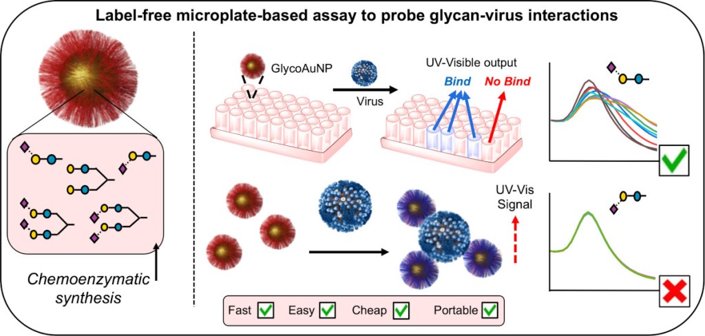 *201 Richards SJ., Chessa S, Sayer L., Ivanova I.,Ahmadipour S., Baker AN., Walker M.,Dedola S., Scott KA, Dibben O., Field RA., and Gibson MI., Small Methods, 2025, 9, 2500214. Label-Free and Microplate-Based Dissection of Glycan-Virus Interactions Using Polymer-Tethered Glyconanoparticles, Link